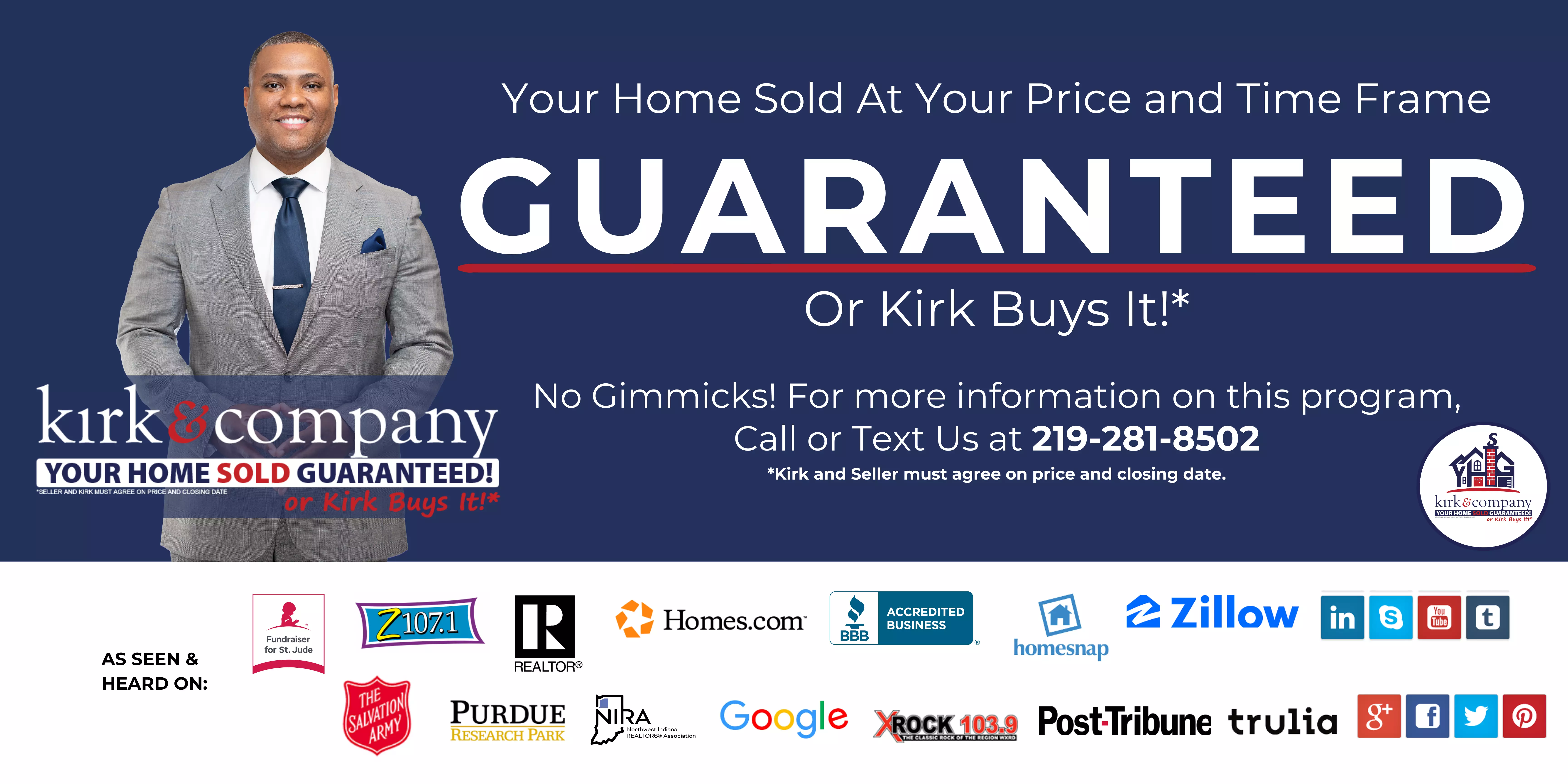 I agree to be contacted by Kirk & Company Your Home Sold Guaranteed! Or Kirk Buys It! via call, email, and text. To opt-out, you can reply 'stop' at any time or click the unsubscribe link in the emails. Message and data rates may apply. Privacy Policy & Terms of Service